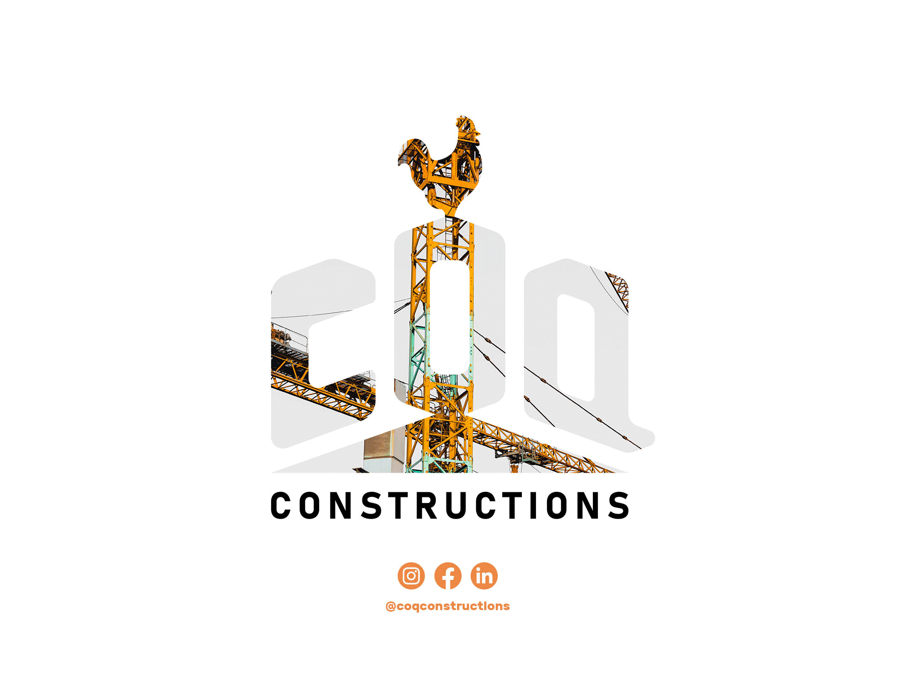 Pour ce projet, j'ai effectué des recherches sur les identités visuelles de plusieurs entreprises de construction. La plupart de ces identités se ressemblent, c'est pourquoi j'ai décidé de prendre un peu de risque, notamment en ce qui concerne les couleurs. Pour le logo, j'ai créé une structure géométrique qui évoque une maison ou un bâtiment, et pour lui donner un aspect plus emblématique, j'ai ajouté une silhouette de coq en haut.